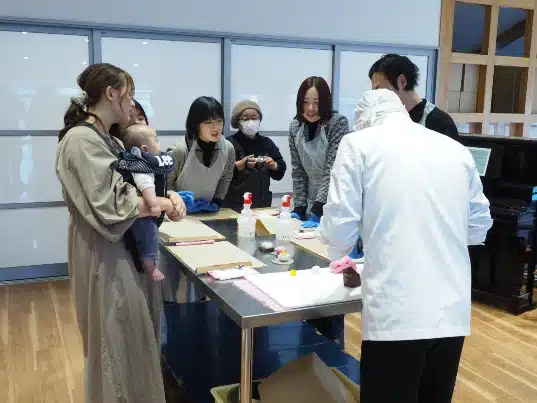 皆様には、とらやの和菓子職人といっしょに自分だけの和菓子を作っていただきます。お子様も一緒にお楽しみいただける内容となっております。